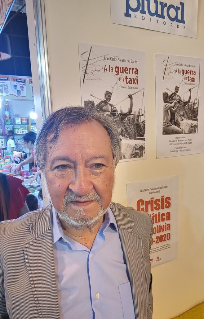 Juan Carlos Salazar del Barrio es un periodista boliviano de dilatada y meritoria carrera dentro y, sobre todo, fuera de Bolivia. Comenzó como reportero en los años 60 en la Agencia de Noticias Fides, el exilio lo llevó a Argentina en los 70 y, de ahí en más, el oficio lo condujo a las principales capitales latinoamericanas y europeas, que vivió y recorrió como corresponsal y director del Servicio Internacional en Español de la Agencia Alemana de Noticias (DPA) durante más de 40 años, antes de retornar a su país de origen, donde sigue haciendo periodismo, aunque ya no desde las trincheras de la coyuntura diaria, sino refugiado en los búnkeres sin tiempo de los libros y la formación. Esta apretada semblanza viene a cuento por dos razones. En primer término, por si al eventual lector su nombre no le suena de inmediato. En segundo, porque el itinerario periodístico y vital es fundamental para entender el origen de los textos que componen su libro A la guerra en taxi: Crónicas desarmadas (Plural, 2023).